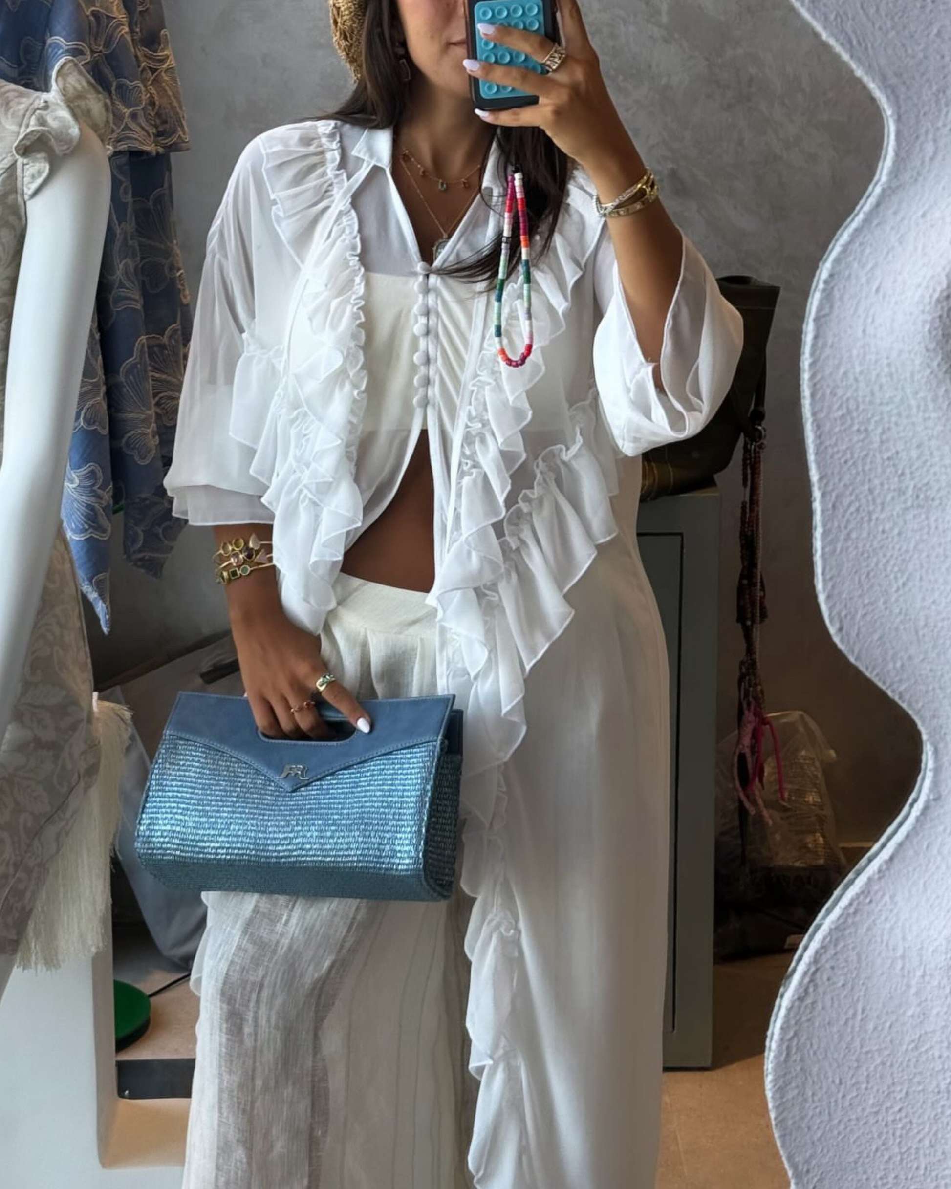 A celebration of effortless elegance, Solea blends natural texture with structured sophistication. Handcrafted from a refined mix of woven straw fabric and premium vegan leather, this piece captures the essence of summer — light, bold, and timeless.