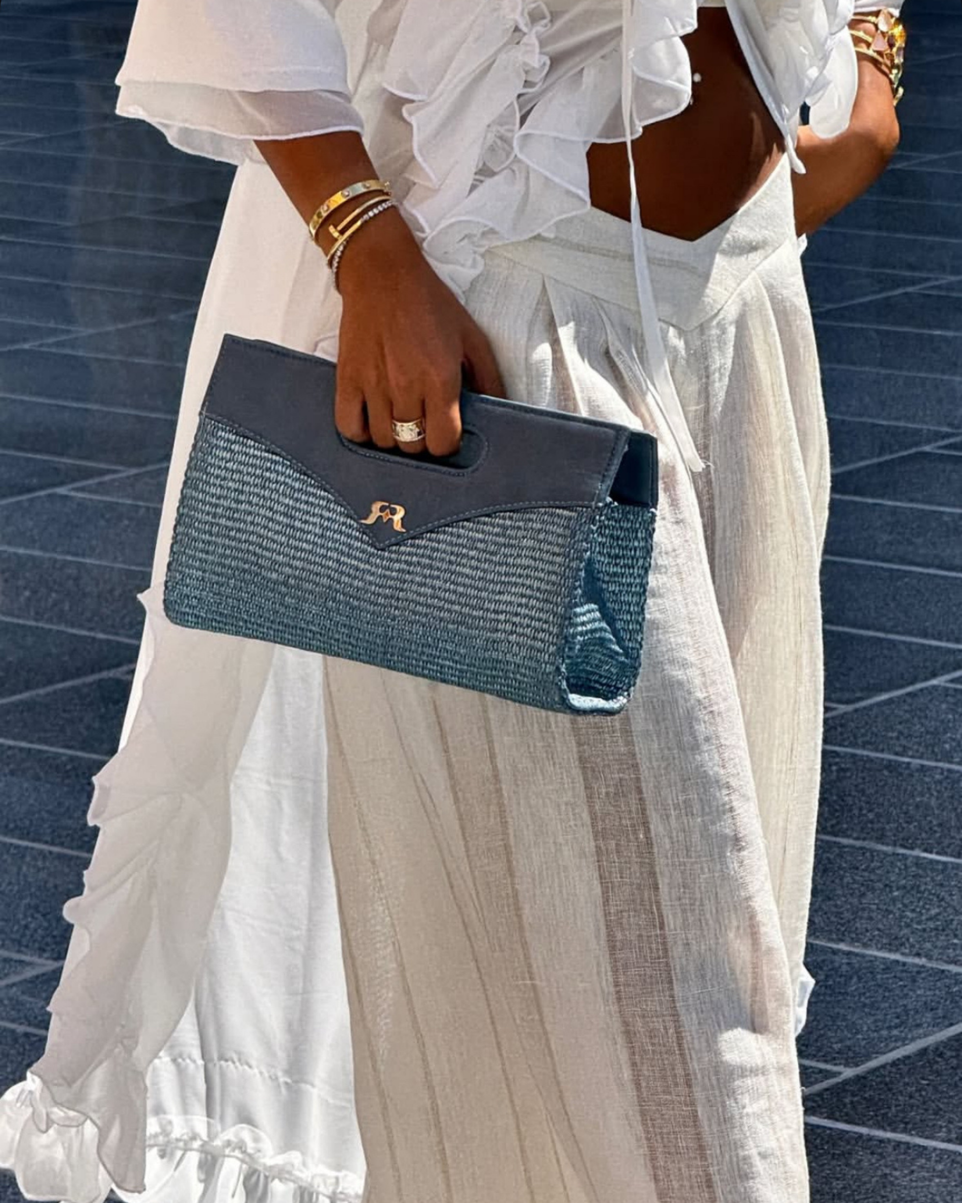 Both sizes feature a sculptural silhouette, built-in handle, and subtle metallic logo — a refined balance of craft and confidence. Whether carried or worn crossbody, Solea is your ultimate summer companion — from city walks to beachside brunches.